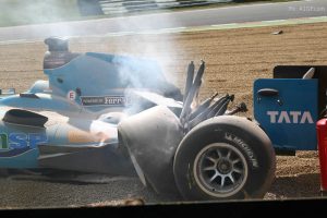 Narain Karthikeyan’s feature race was brief – and brutal